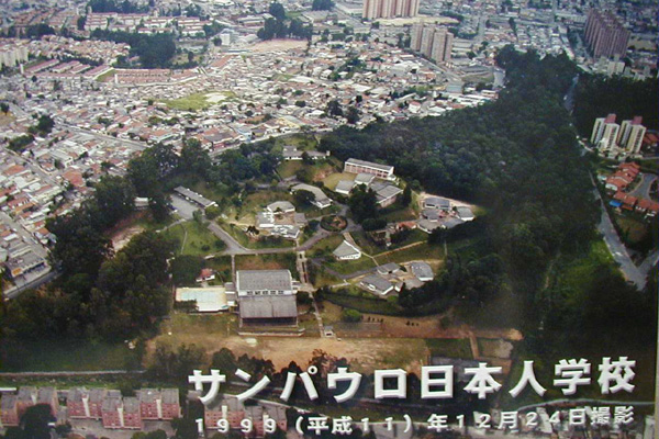 カンポリンポに移転24年後の1999年の写真です。むかしは,別荘地でまわりが林や原っぱだったのが,今では住宅がたくさんできて,おおぜいの人が住む町にかわってきています。また,地下鉄をカンポリンポまでのばす工事が2002年開通の予定で進められています。