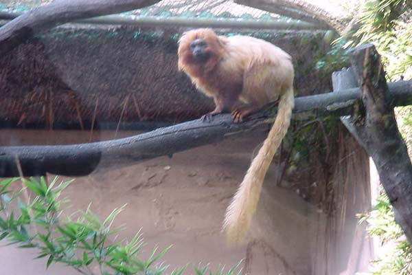体長16〜50cm,全身が金色の毛でおおわれている。たてがみがある顔はまるでライオンのようにみえる。樹上に小さなむれをつくってくらし,夜はねむって,昼間に果実,花,昆虫などを食べる。現在,絶滅の危機にひんしている。その原因として,木材に関する伐採や牧場地,農地・宅地開発による森林破壊,乱獲があげられる。森が散在してしまったために,交配に悪影響をあたえている。輸出禁止令の施行,保護区をもうけたりなど,政府も保護活動をおこなっている(写真はサンパウロ動物園にて)。